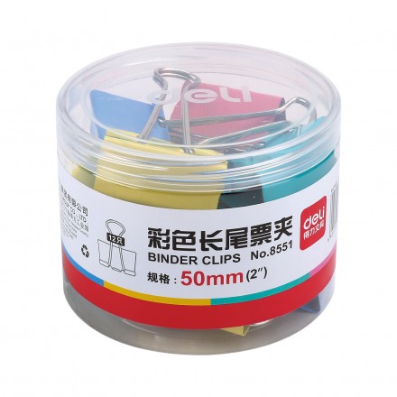 得力8551-1#彩色長(zhǎng)尾票夾51mm(筒裝)(混)(12只/筒)